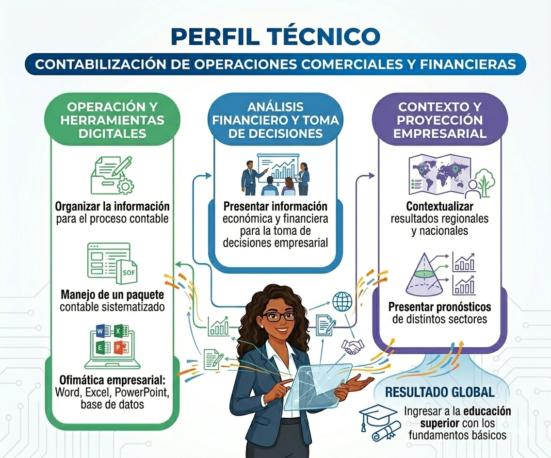 El área de Contabilidad y Finanzas con énfasis en Gestión Empresarial impulsa la formación de estudiantes capaces de responder a las necesidades reales del sector productivo, fortaleciendo competencias para la creación, innovación y dinamización de proyectos empresariales. Desde una perspectiva técnica y orientada al desarrollo económico, el programa prepara talento humano calificado para la contabilidad de operaciones, el manejo responsable de inventarios y el control financiero, formando jóvenes que aportan eficiencia, organización y visión empresarial a la pequeña y mediana empresa.