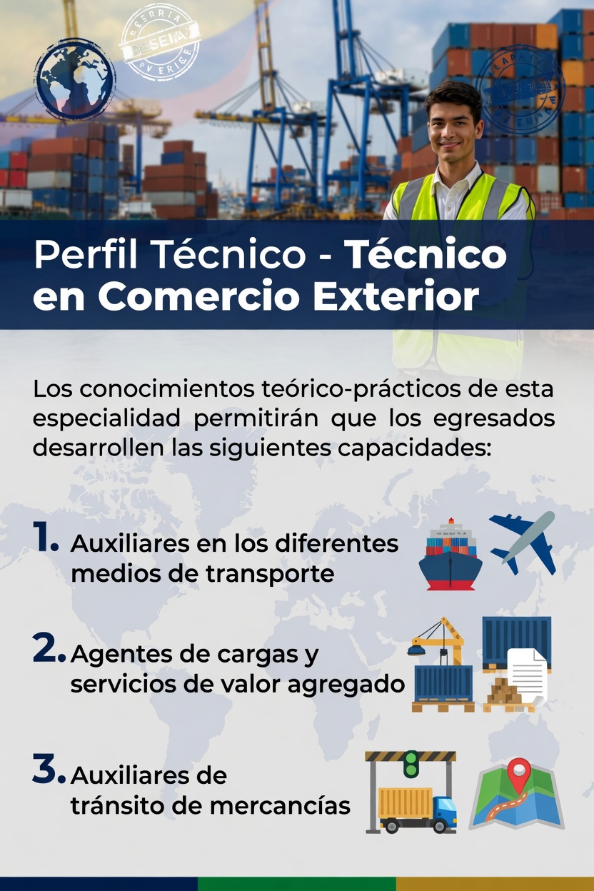 Se espera formar estudiantes que una vez egresados se proyecten hacia el sector aduanero y portuario, desempeñándose de manera eficiente en las empresas que los contraten, y aún más, crear grupos de trabajo asociado para así, desarrollar su proyecto de vida.